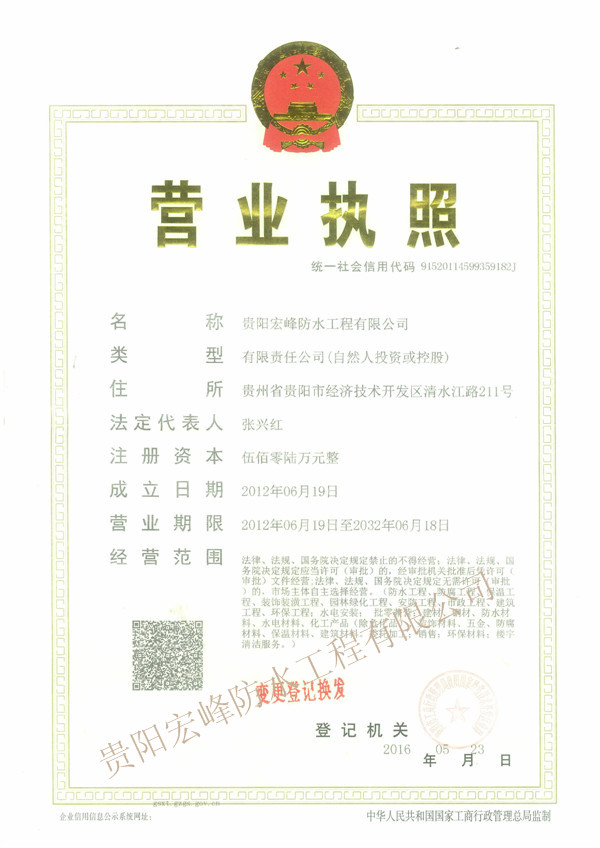宏峰公司屬?lài)?guó)家防水防腐保溫工程專(zhuān)業(yè)承包貳級(jí)資質(zhì)企業(yè),經(jīng)貴州省住房和城鄉(xiāng)建設(shè)廳考核合格